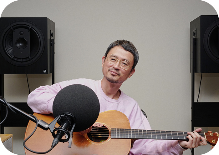 最近の長岡亮介の制作事情を語りながら、STUDIO CONFORTに鳴り響くギターの音色。