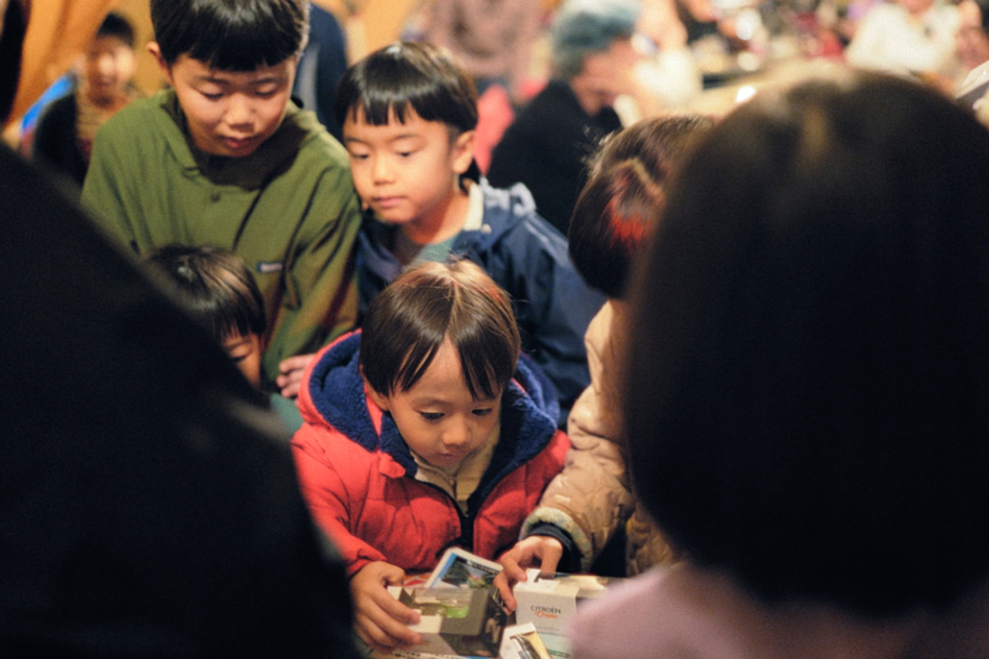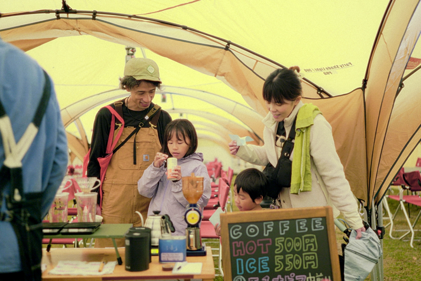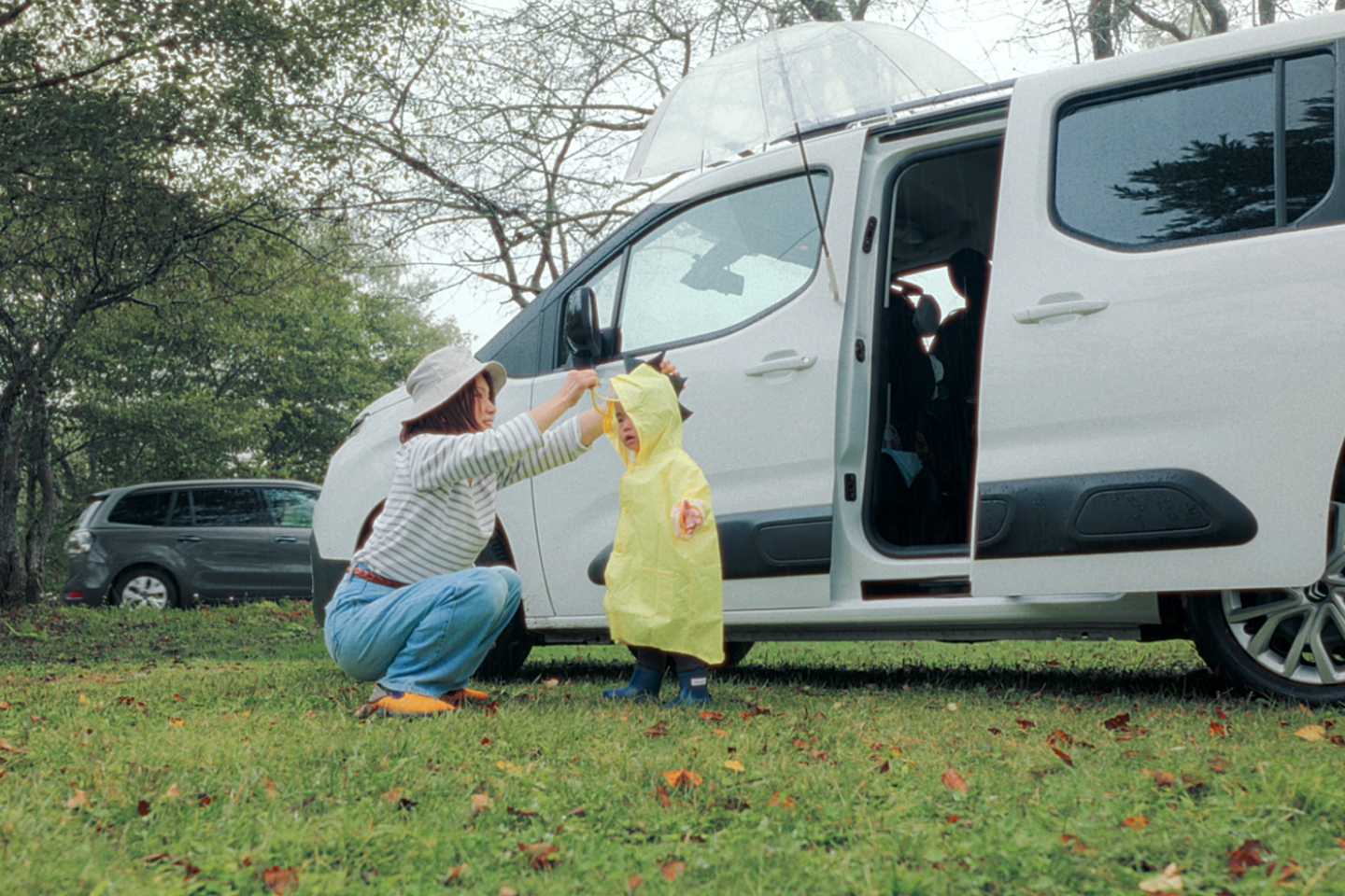 テントの設営に苦戦しながらも、緑豊かな高原でのんびり流れる時間を満喫するみなさん。子どもたちはレインコートや長靴で走り回り、ワンちゃんも元気いっぱいに散策します。旧車オーナーも多数集まって、互いの相棒を自慢し合ったり、愛車とどんな風に過ごすか情報交換をしたりと、前夜祭らしいワクワクに包まれた穏やかな空気が流れていました。