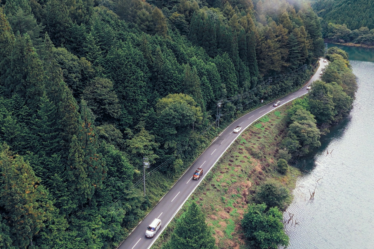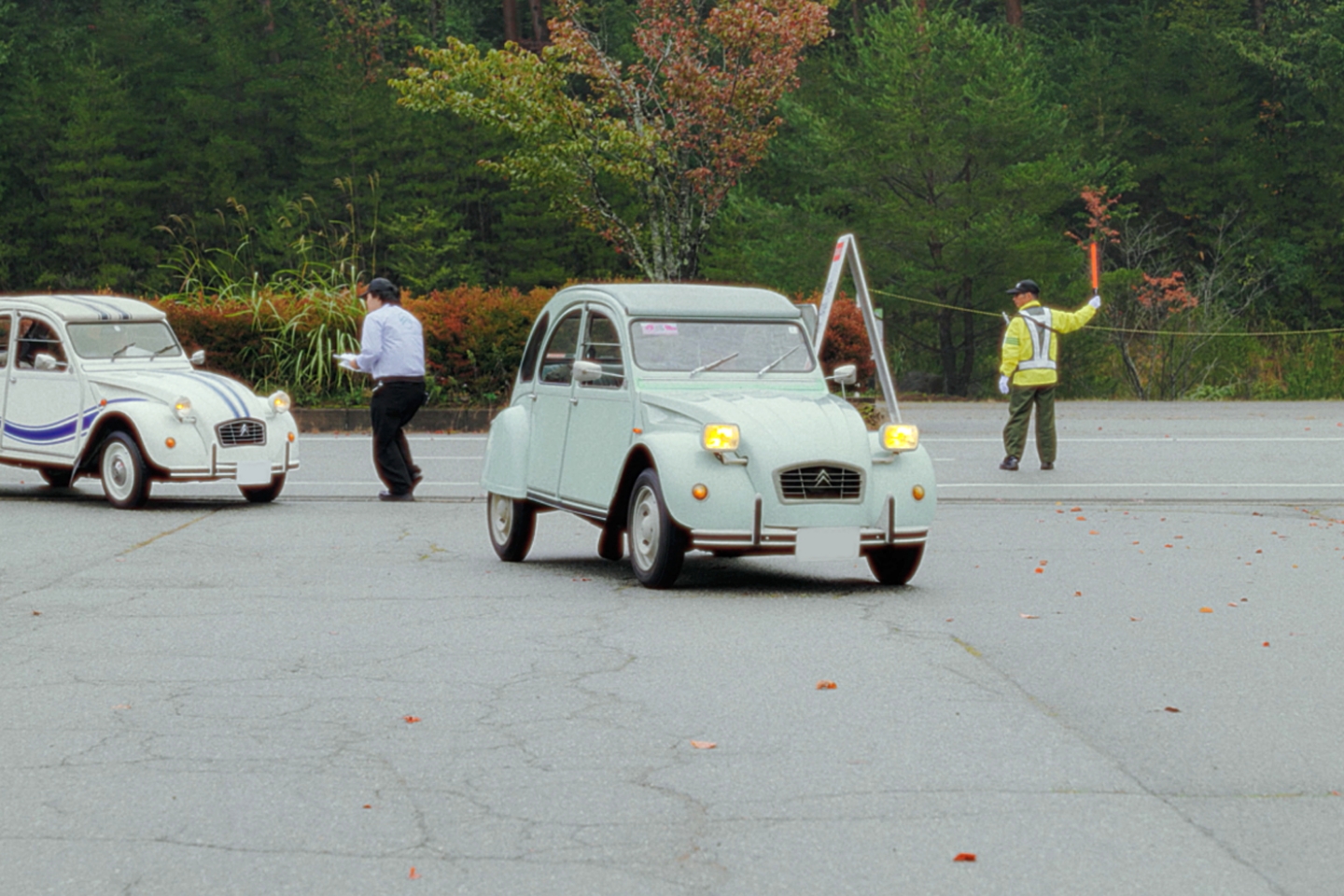 キャンプ場での前夜祭から参加したみなさんが、翌朝にはパレードを組み、高原の道へ。行き先は、飛騨の深い山々に抱かれたランデブーの会場「モンデウスパーク」です。澄んだ空気の中を連なって走るシトロエンの隊列は、まさに圧巻!